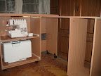 | Пару недель назад у моего Джеймса Бонда (коверлок Меррилок 007) появилась достойная подружка (Brother NV 400). Счастью моему не было предела... пока я не поняла, что уместить два агрегата на одном журнальном столике, да еще и шить при этом - сродни фантастике. И тогда я скромно так сказала мечтательным голосом: "Мне бы теперь еще специальный швейный столик... чтобы это все удобно уместить..." В общем, муж потребовал фоток желаемого (за основу взят самодельный столик одной из осинок)... потом мы пару часов марали бумагу схемами... потом поехали в магазин... и мой столик начал рождаться! Конечно, он еще не доделан - еще будут дверки и срезы не везде еще обработаны. Но уже вполне работопригоден и так хочется начать делиться радостью! (только чур на грязный пол не смотреть! у нас нескончаемый ремонт...) В сложенном виде (позже тут будут дверки) Тумба (в ней еще будут две полочки) выдвинута, откидная столешница закреплена: Выдвигающиеся полочки для машинки и оверлока: (крупнее фотки тут ) Сзади еще одна откидная столешница и еще одна планируется откидываться сверху вперед Все это счастье на колесиках, катается-поворачивается-стопорится, как угодно Ну правда же, он у меня умничка, мой любимый муж?!! :love: